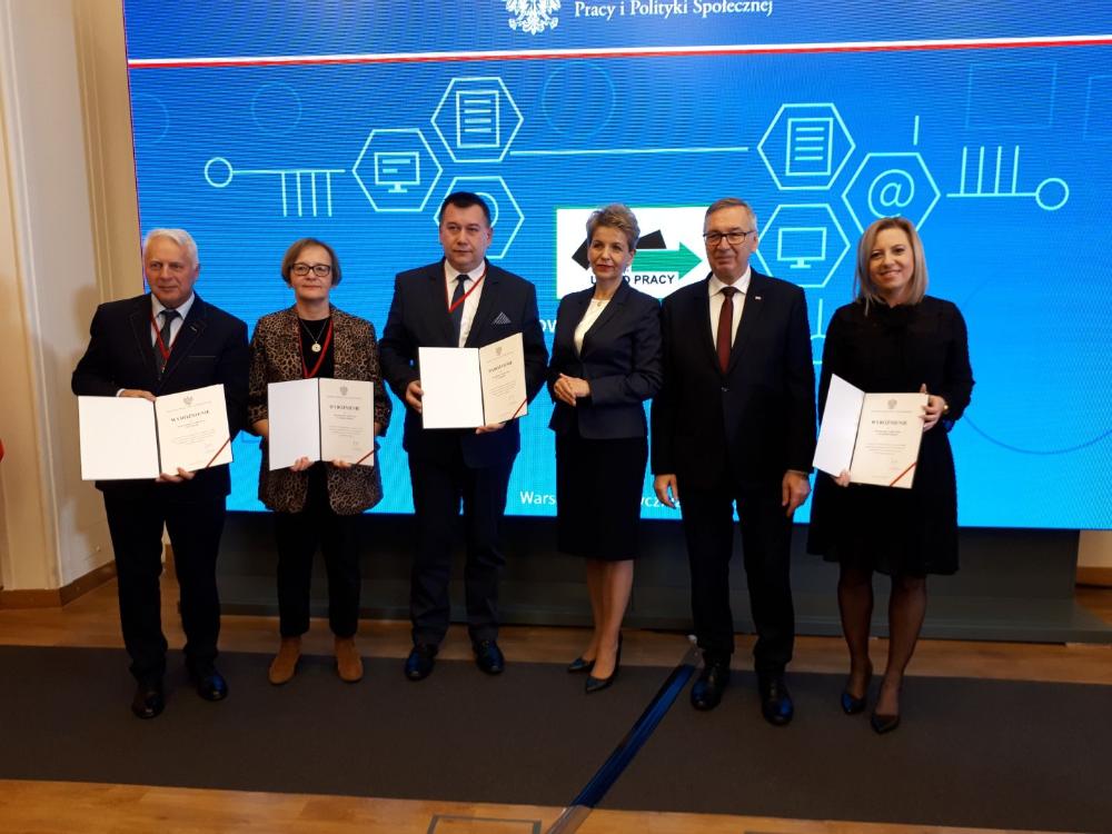 Ponadto, nagradzano urzędy pracy w kategoriach: najskuteczniejsze wdrażanie w 2019 r. Krajowego Funduszu Szkoleniowego oraz efektywna obsługa pracodawców w zakresie spraw dotyczących zatrudniania cudzoziemców w 2019 r.